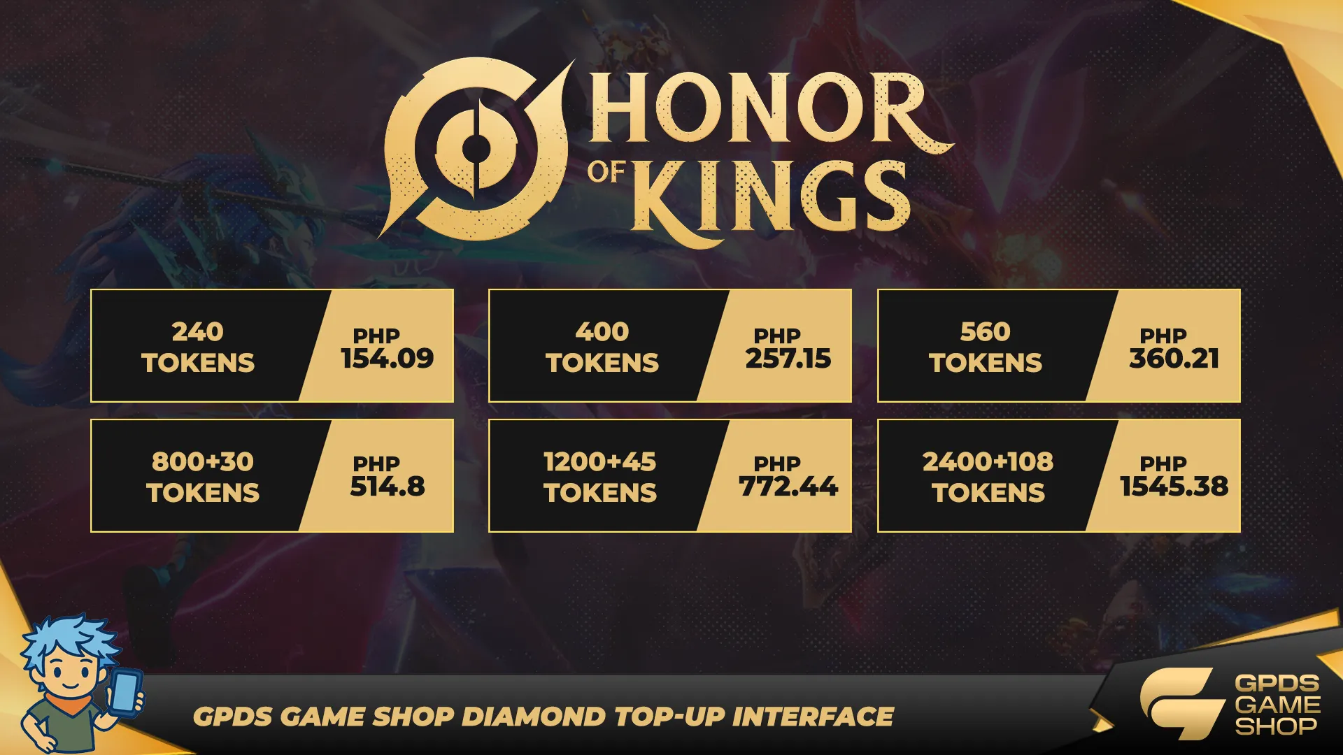 Whether you need a small batch of tokens or large bundles for continuous play, GPDS Game Shop makes it easier to get started and stay competitive in Honor of Kings.
